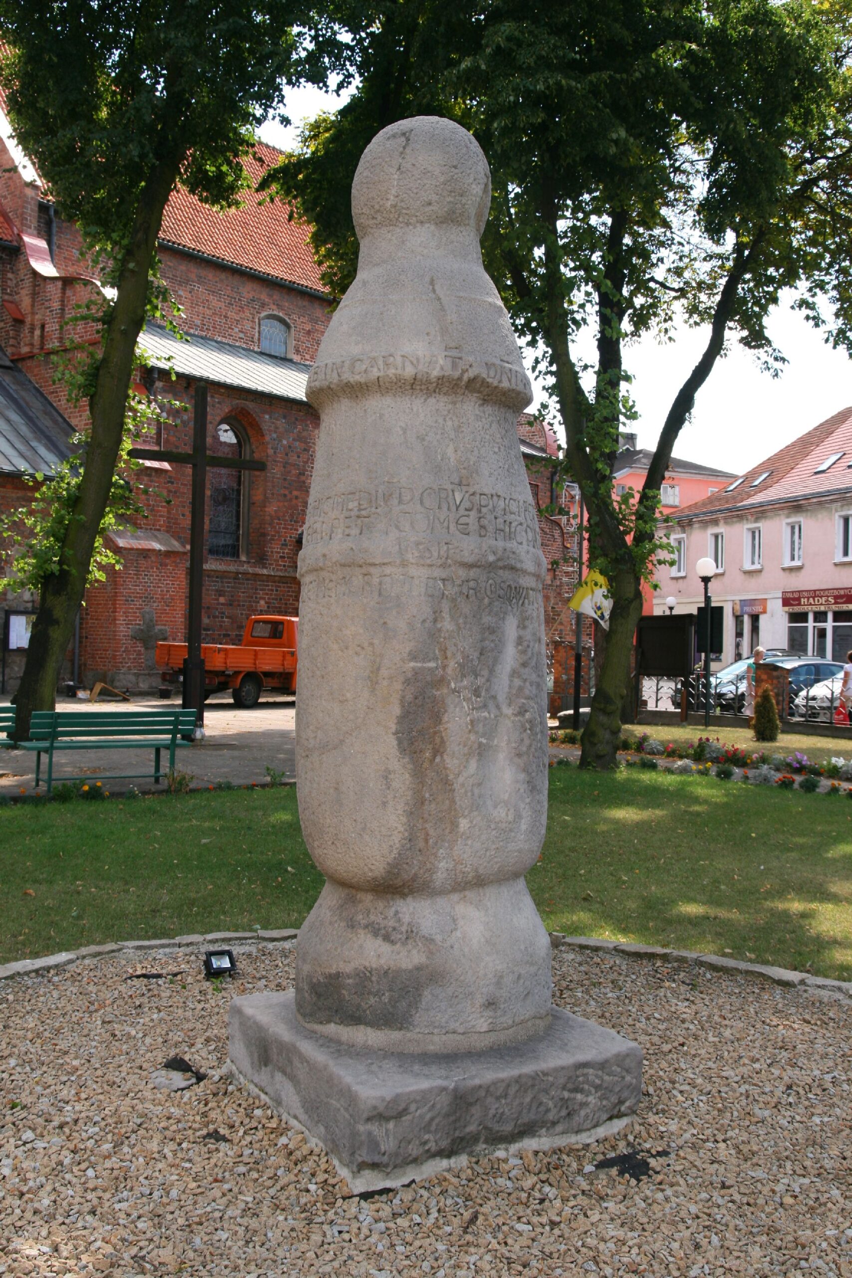 Słynny słup drogowy przy kościele św. Bartłomieja to pierwsze miejsce, które przychodzi na myśl, gdy pojawia się hasło „zabytek Konina” – i trudno się temu dziwić, bo to jeden z najbardziej niezwykłych średniowiecznych artefaktów w Polsce. Kamienny, romański słup, ustawiony tu w 1151 roku, wygląda z pozoru niepozornie: smukły, cylindryczny trzon z piaskowca, lekko zwężający się ku górze, zakończony prostym, kulistym zwieńczeniem. Dopiero gdy stanie się przy nim na dłużej, zaczyna się dostrzegać, jaką symboliką i znaczeniem jest naładowany – to najprawdopodobniej najstarszy zachowany znak drogowy w Polsce, a jednocześnie wyjątkowy na skalę Europy Środkowo‑Wschodniej. Inskrypcja, dziś trudna do odczytania bez pomocy tablicy informacyjnej, mówi o połowie drogi między Kaliszem a Kruszwicą i odsyła do czasów, gdy przez ten obszar biegł ważny szlak handlowy, wykorzystywany m.in. w handlu bursztynem. Stojąc przy słupie, ma się wrażenie, że jest to nie tylko kamień z wyrytym tekstem, ale rodzaj kamiennej „pinezki” w krajobrazie dawnej Polski piastowskiej, która przetrwała wieki w prawie niezmienionej formie. Jego obecne położenie – na skwerze przy kościele farnym – pozwala oglądać go w otoczeniu innych zabytków, dzięki czemu łatwo wyobrazić sobie, jak istotnym punktem orientacyjnym był dla podróżnych. To zabytek, który nie przytłacza rozmiarem, ale potrafi zupełnie zmienić sposób patrzenia na Konin, bo przypomina, że w tym „spokojnym” dziś miejscu krzyżowały się kiedyś jedne z najważniejszych dróg w tej części Europy.